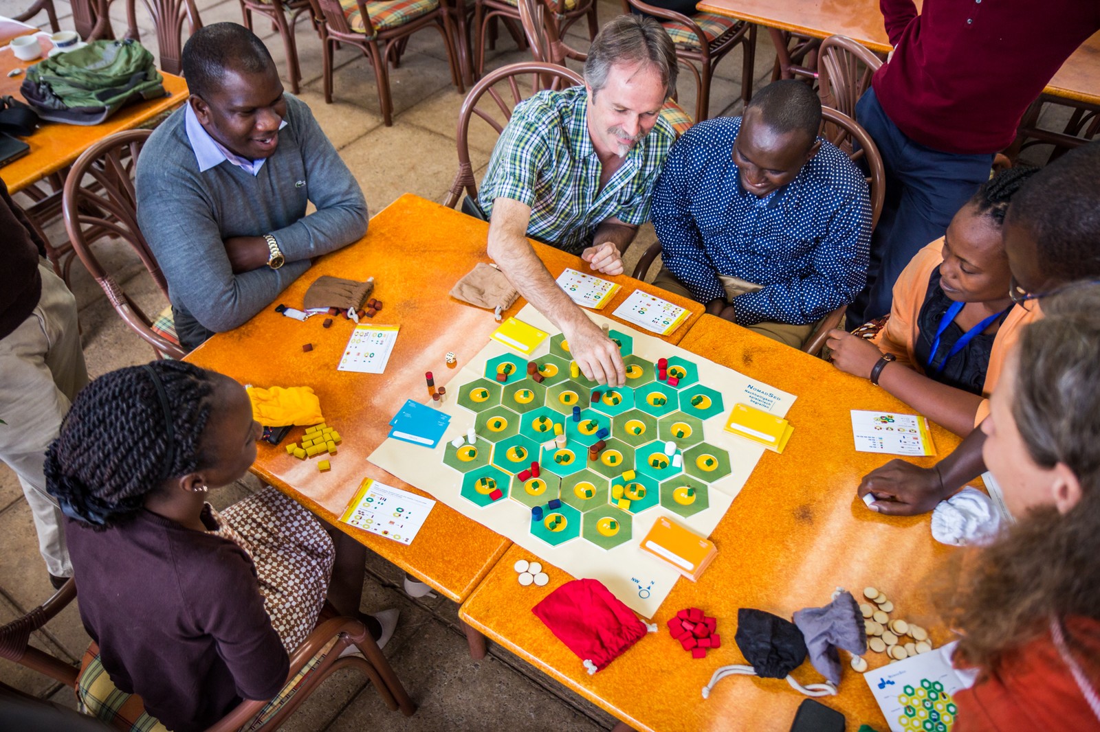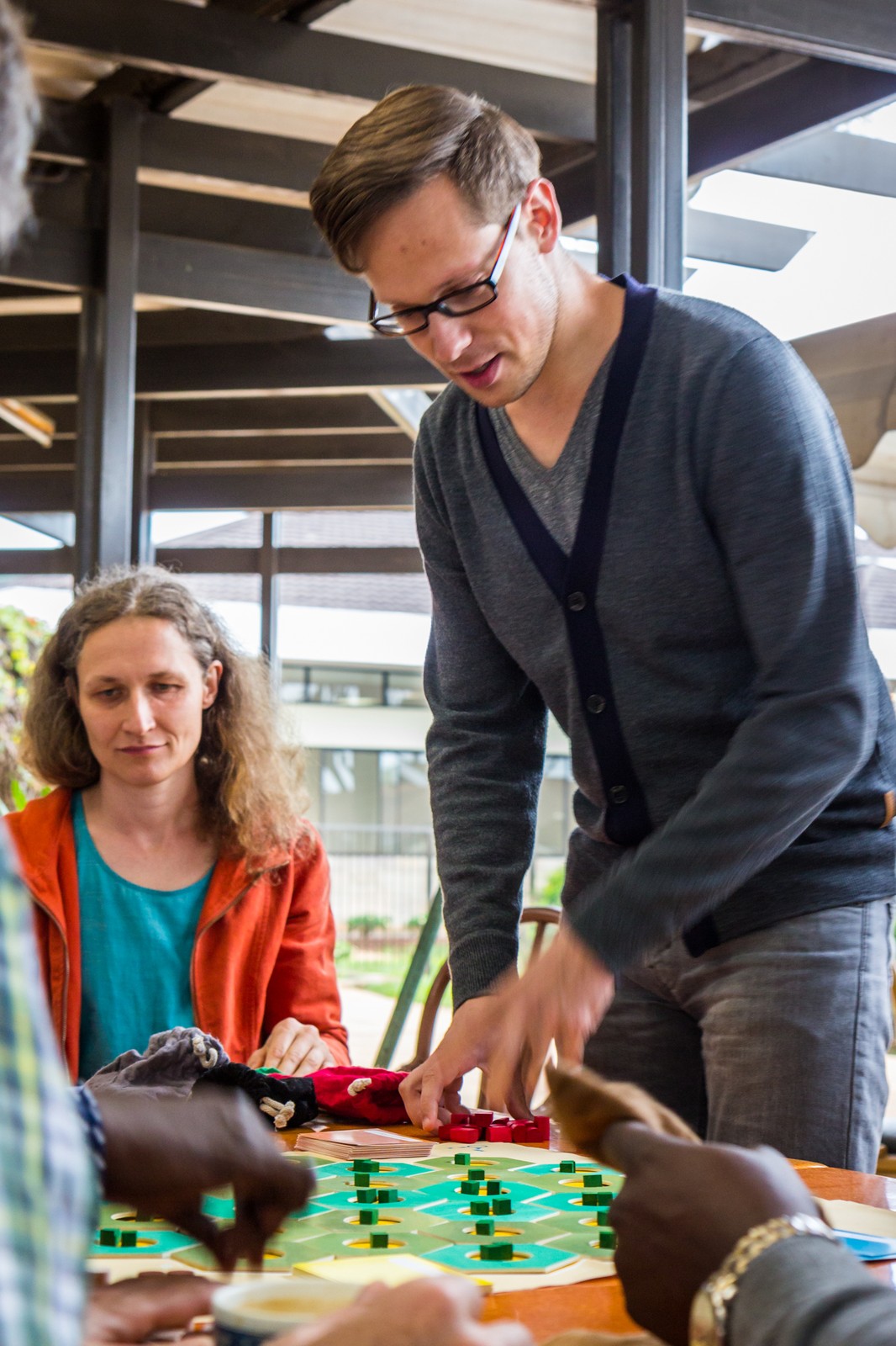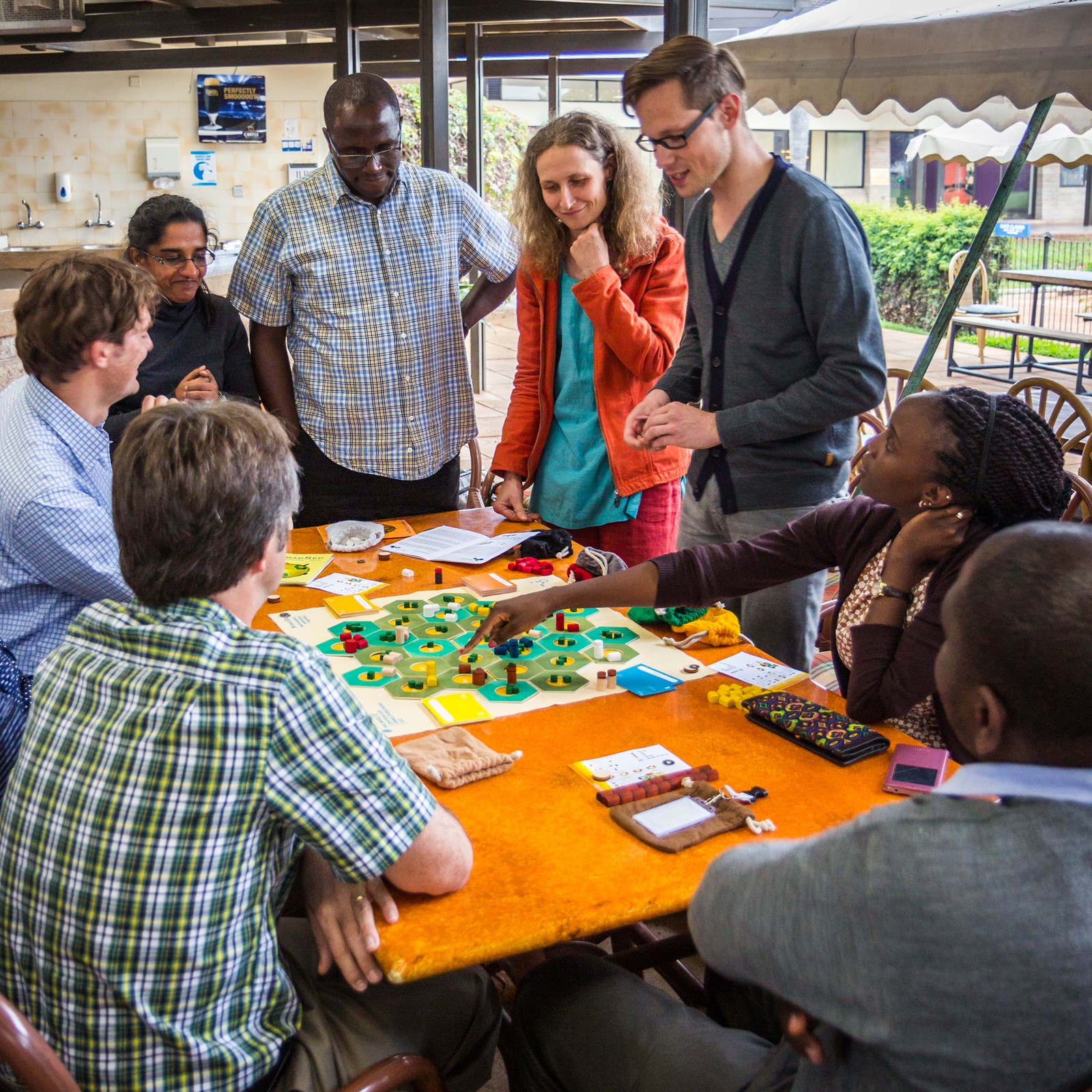 Both scientists and stakeholders expressed a strong interest in the game. Representatives of local insurance companies that currently market the IBLI insurance product in several regions in Kenya saw a great potential in the game to be used as a teaching tool, e.g. to train sales agents or to explain the insurance to pastoralists. However, to make this possible, we need to develop an extended version of the game including insurance first. This was discussed quite intensely during a playing session that we set up one afternoon at the ILRI campus. Here, we challenged researchers of the Livestock Systems and Environment (LSE) program at ILRI to demonstrate their pastoral skills and collected a lot of valuable input for the further development of the game. Also, we had a lot of fun while playing the game, as you can clearly see in the pictures!