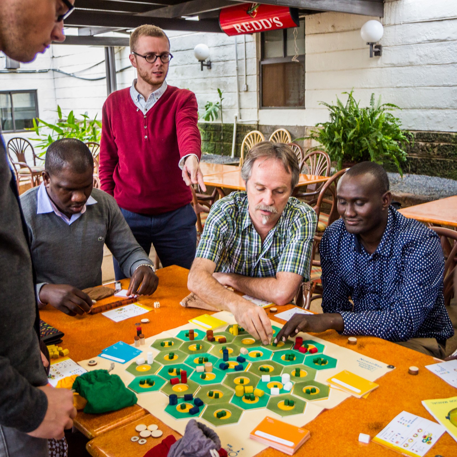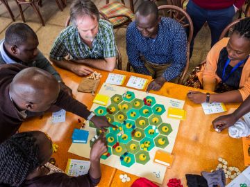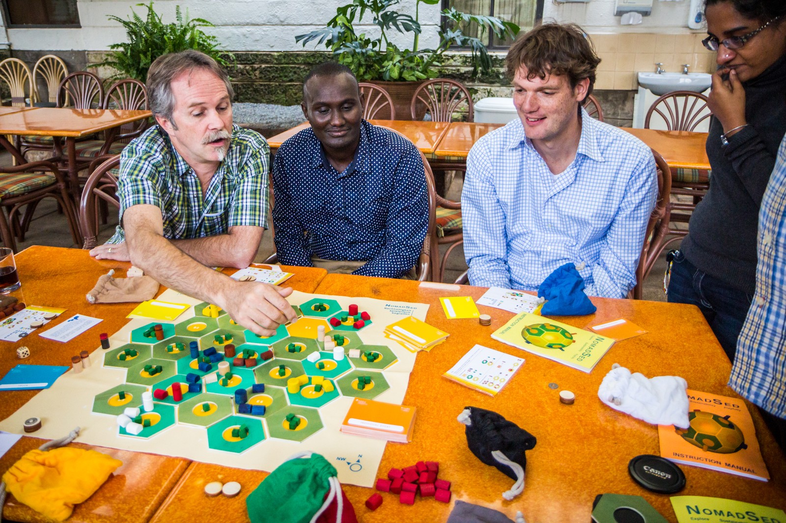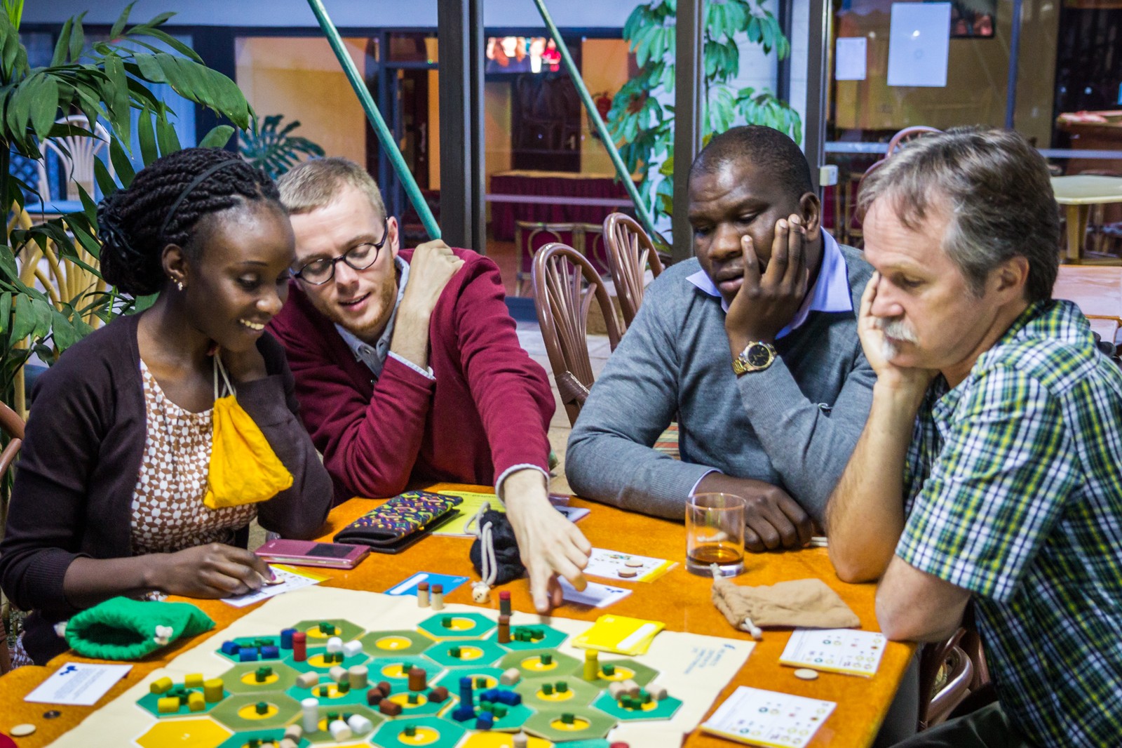 Both scientists and stakeholders expressed a strong interest in the game. Representatives of local insurance companies that currently market the IBLI insurance product in several regions in Kenya saw a great potential in the game to be used as a teaching tool, e.g. to train sales agents or to explain the insurance to pastoralists. However, to make this possible, we need to develop an extended version of the game including insurance first. This was discussed quite intensely during a playing session that we set up one afternoon at the ILRI campus. Here, we challenged researchers of the Livestock Systems and Environment (LSE) program at ILRI to demonstrate their pastoral skills and collected a lot of valuable input for the further development of the game. Also, we had a lot of fun while playing the game, as you can clearly see in the pictures!